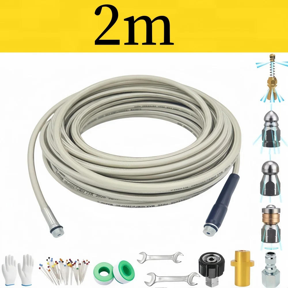 2-50m White Sewer Drainage Cleaning Hose High Pressure Hose Pipe Cleaning Kit With Connectors Nozzles Cleaning Tools For Karcher