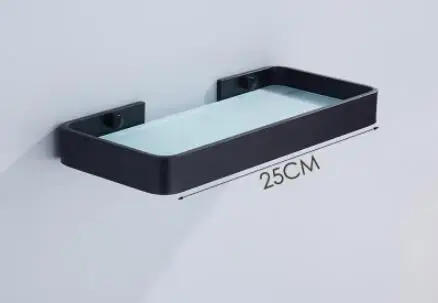 25CM 35CM 45CM Black Aluminum Glass Shelf,Square bathroom glass shelves,Shower room Rack,Cosmetic Shelf