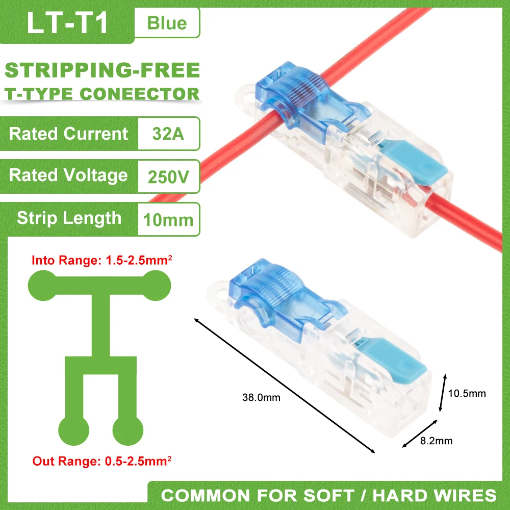 25PCS T-Type Led Splice Terminal Stripping Free Wire Connector With Fixing Hole Quick Branch Junction box lever Wiring connector