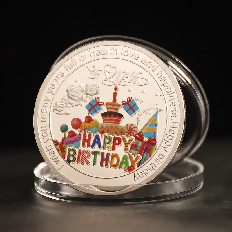 Happy Birthday Coins Commemorative Medal Art Creative Coins Lucky Coins Birthday Medallion Coin Art Collection Coins Gift Coins Feature: 1% brand new and high quality 2 for bars or domestic decoration 3:gold,sliver Item Sizes(approx): 40mm/1 diameter Thickness 3mm/0 Package include: 1Pc Coins