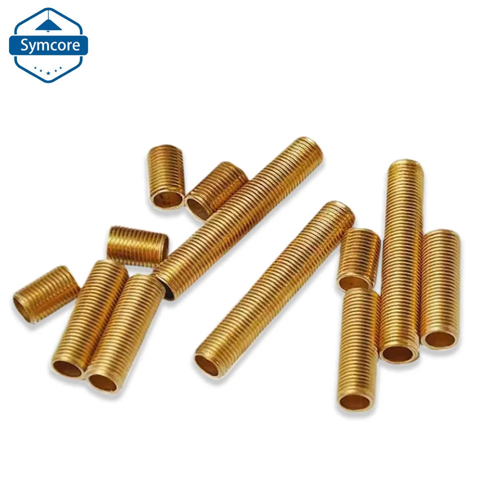 2Pcs M10 Pure Copper Dental Tube Pole Brass Full Tooth Hollow Lighting Connect Thread Bar 15-500mm Lamp Head Threaded Tube