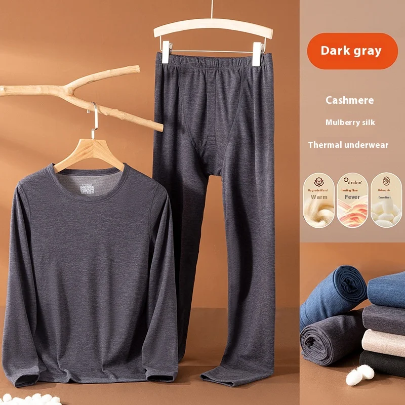 2PCS/Set large size men's non-marking cashmere simulation silk thermal underwear padded and thickened fall coat and pants bottom