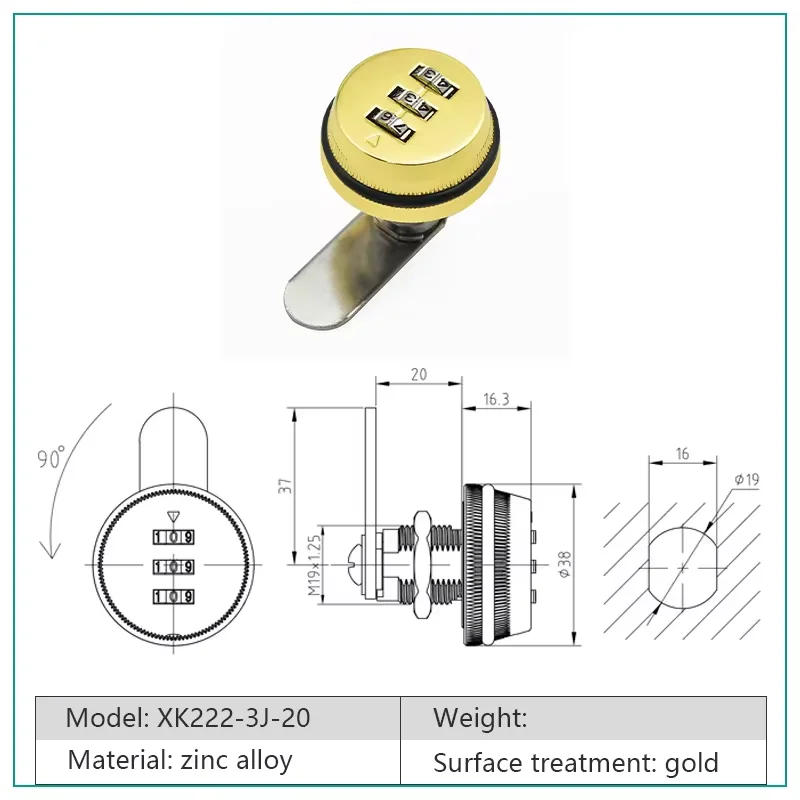 3 Digit Security Password Keyless Drawer Cam Lock Combination Coded Door Cabinet Home Hardware Zinc Alloy Mail Box