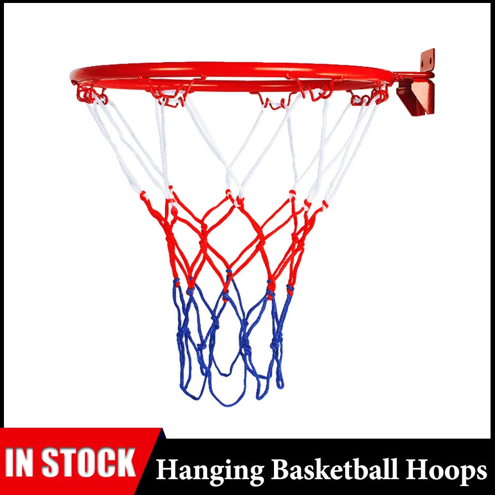 32cm Wall Mounted Basketball Hoop Netting Metal Rim Hanging Basket Basket-ball Wall Rim W/ Screws Indoor Outdoor Sport