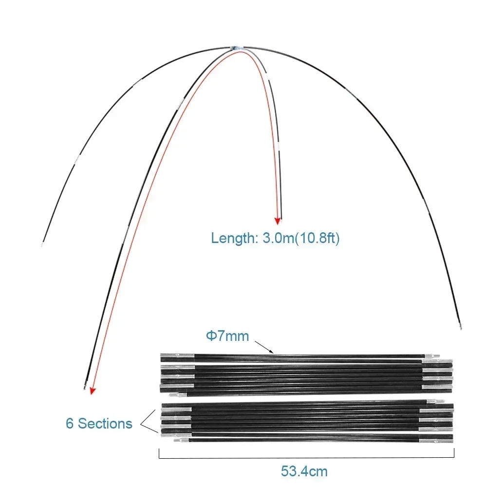 3/3.3/4/4.48/4.9m Fiberglass Tent Rod Camping Tent Pole Bars Support Rods Awning Frames Kit Hiking Travel Outdoor Tools