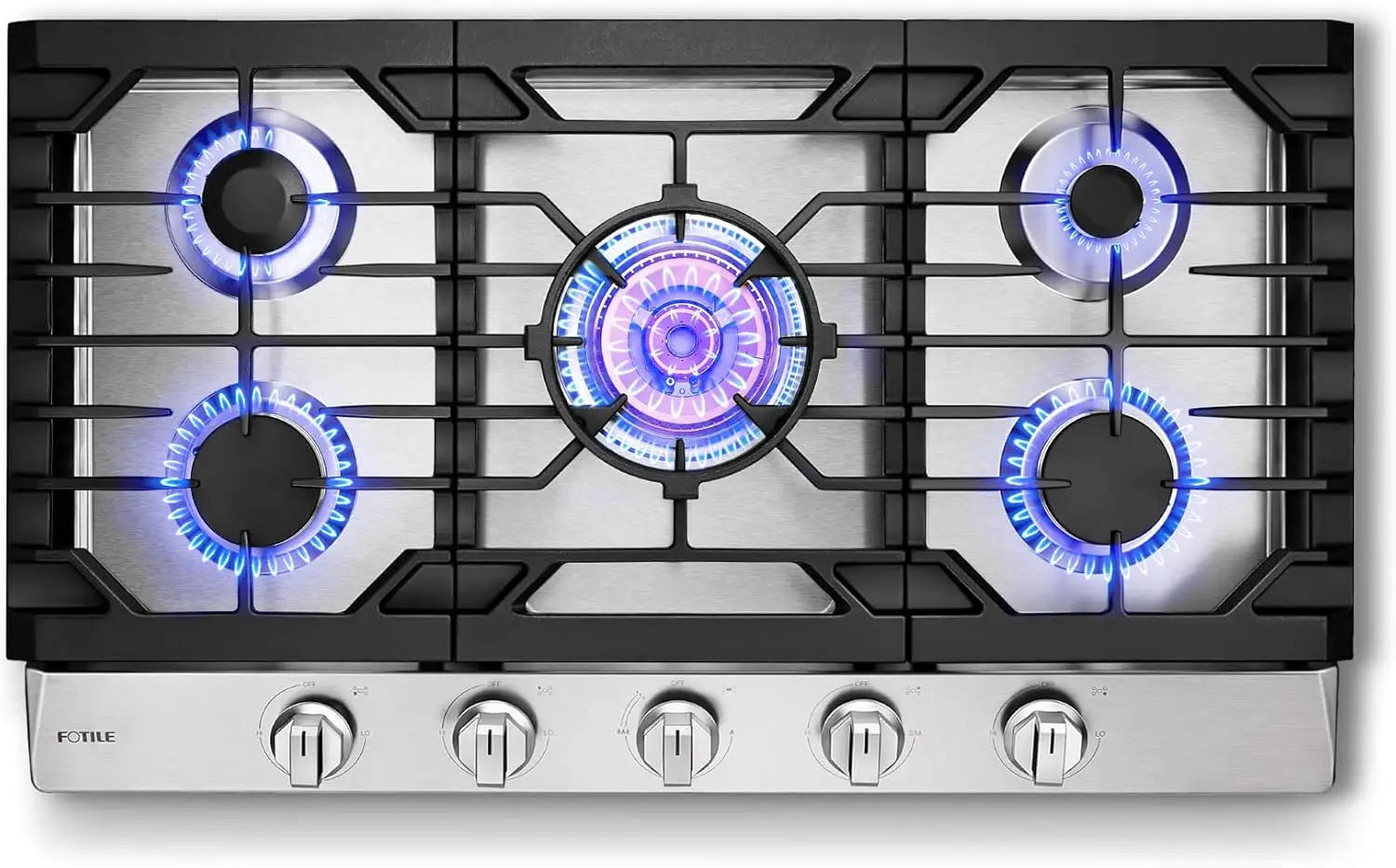 36”Stainless Steel 5-Burner Gas Cooktop Tri-Ring 22000 BTUs Center Burner with Flame Failure Protection Removable Grates