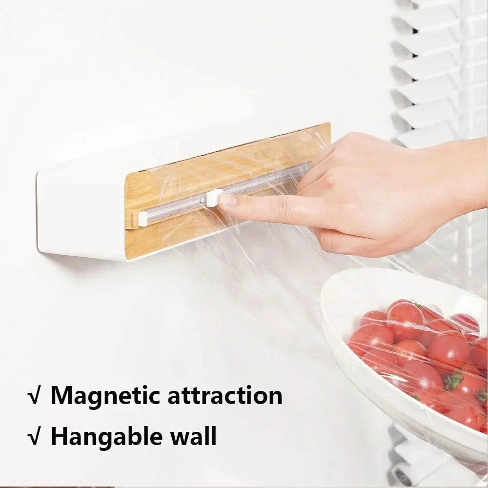 3in1 Plastic Wrap Dispenser Magnetic & Self adhesive Cling Film Dispenser Cutter Kitchen Tool Aluminum Foil Baking Paper Cutter