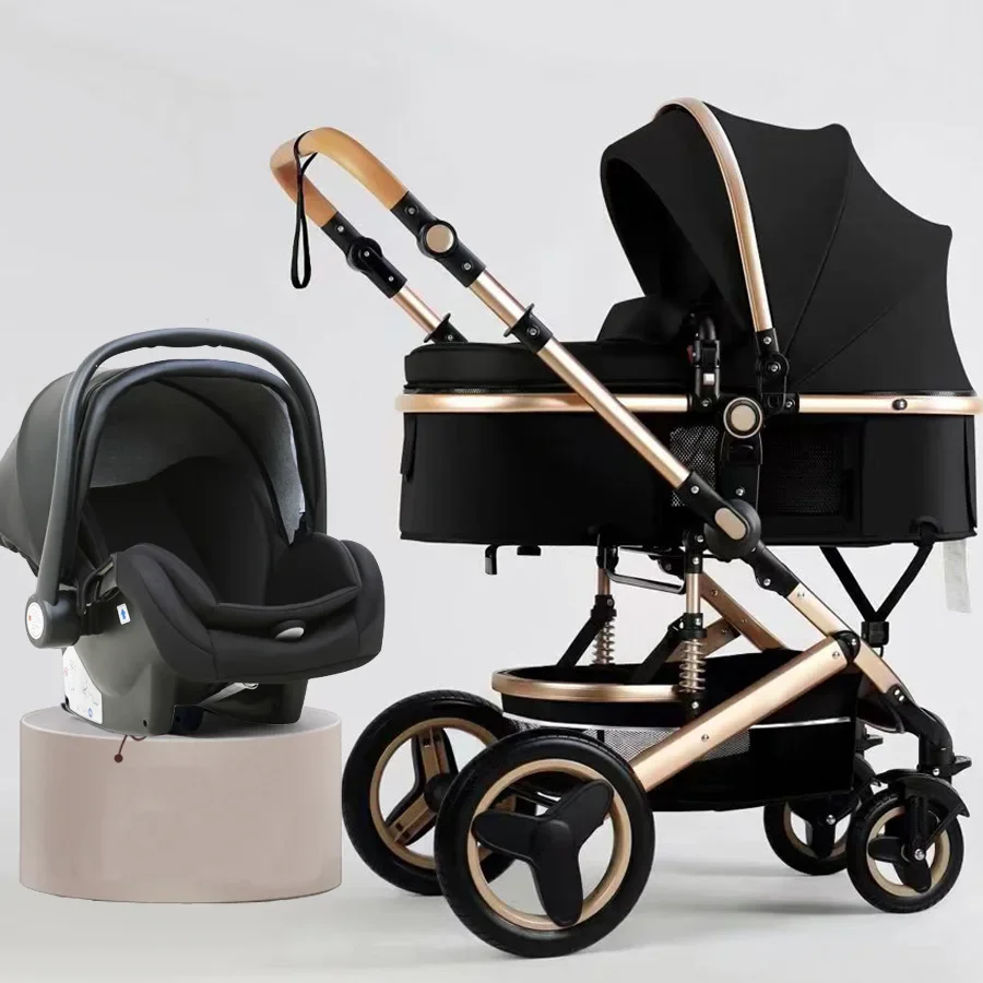 3-in-1high landscape baby stroller that can be seated or reclined,one click folding and folding,two-way shock-absorbing handcart