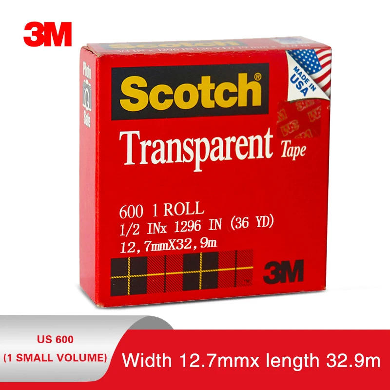 3M Scotch Transparent Tape 600 Tape 600P Ink Adhesion Test Tape Large Roll 19/12.7Mm Packing Home Office Use