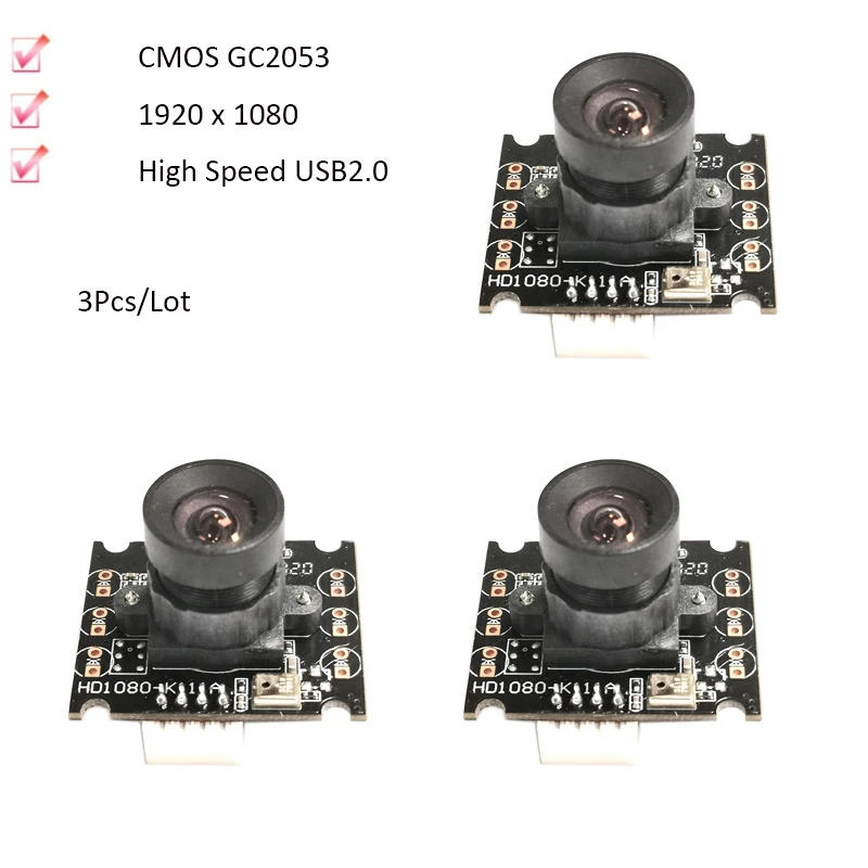 3Pcs/Lot 2MP HD 1080P CMOS GC2053 FF 95° 30FPS USB Camera Modules For Face Recognition