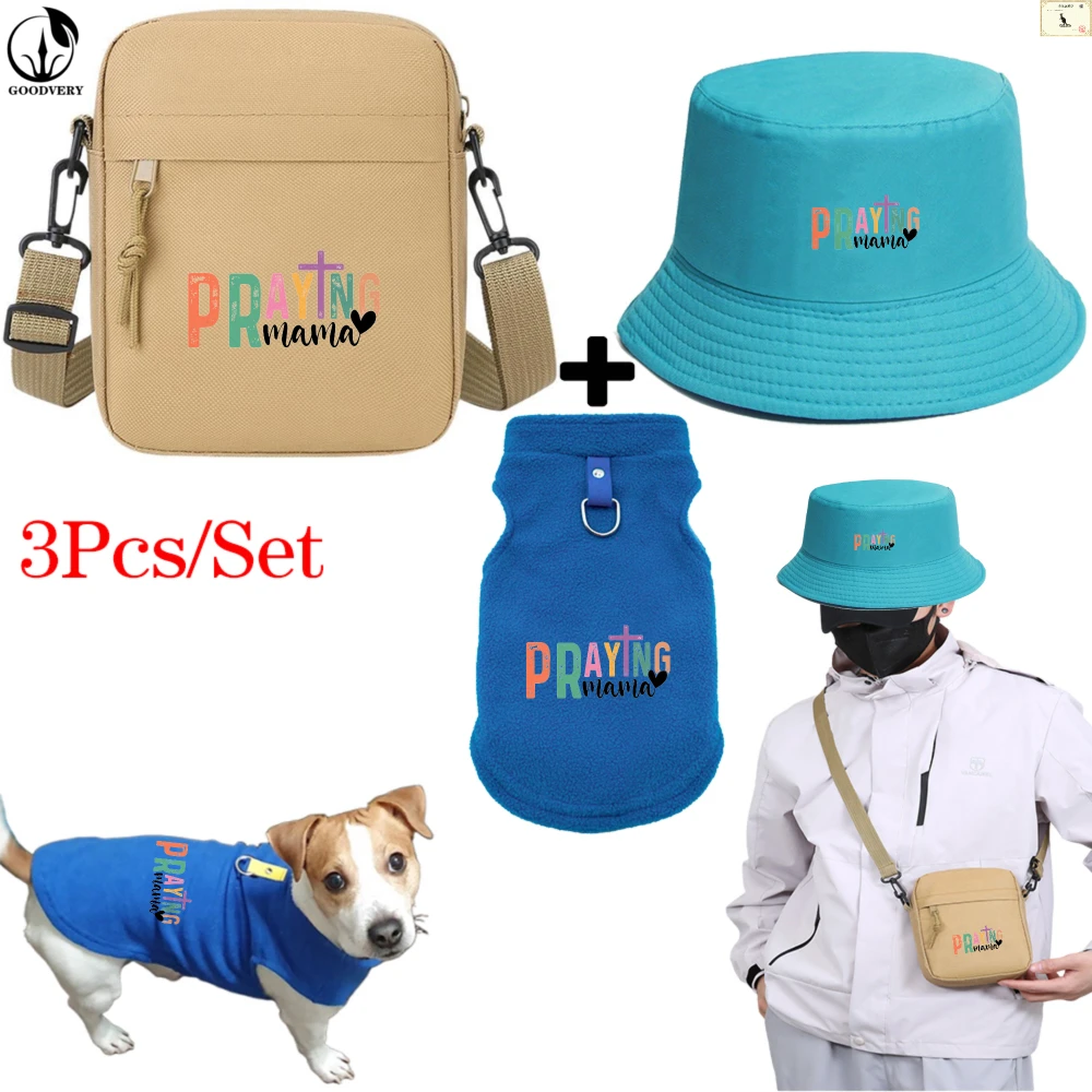 3Pcs/Set Print Bag Hat Pet Clothing Combination Three Piece Set Equipment Suitable for Outdoor Travel with Pets