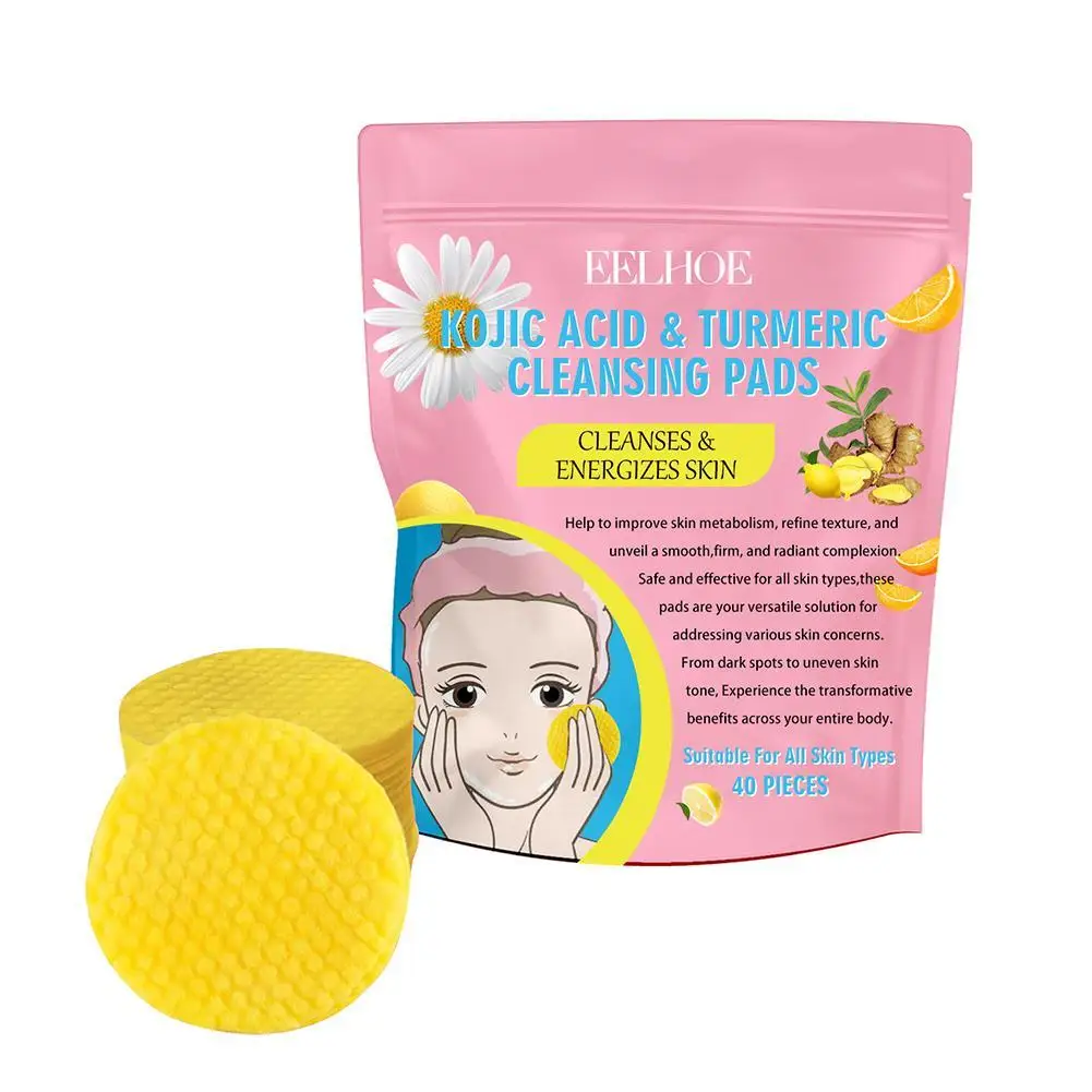 40pcs Turmeric Kojic Acid Cleansing Pads Exfoliating Pads Facial Sponges For Cleansing And Exfoliating Removing Dead Skin