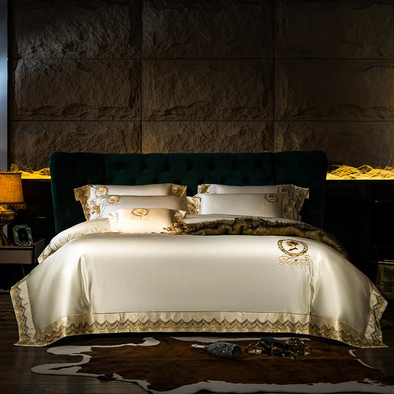 4/6Pcs Satin like Silk and Cotton Embroidery Duvet Cover Set Double Queen King size Luxury Bedding Set Flat Sheet Pillow shams