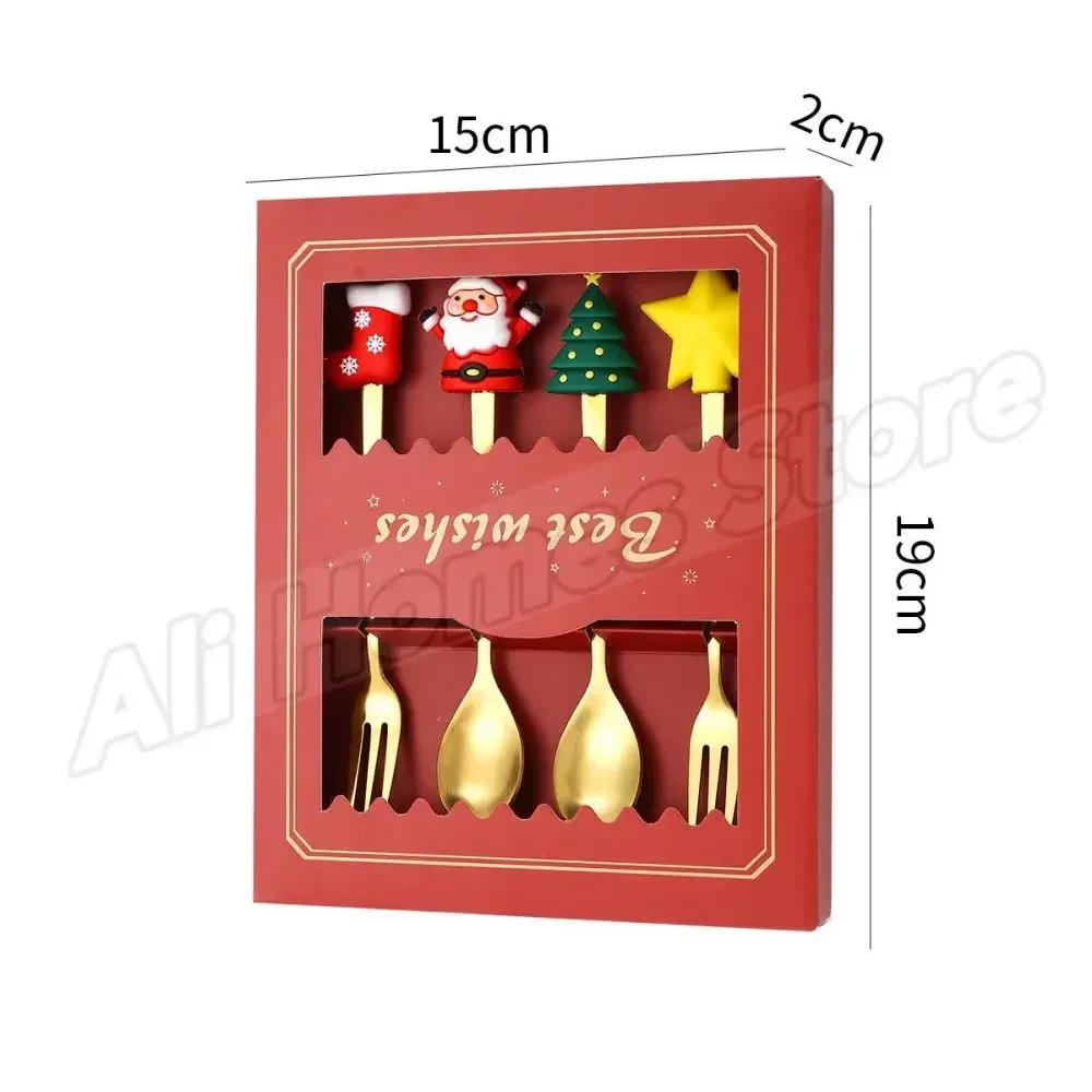 4PCS Christmas Spoons Fork Set Christmas Cutlery Set Elk Dessert Scoop Fruit Fork Coffee Spoon Stainless Steel Dessert Fork Set