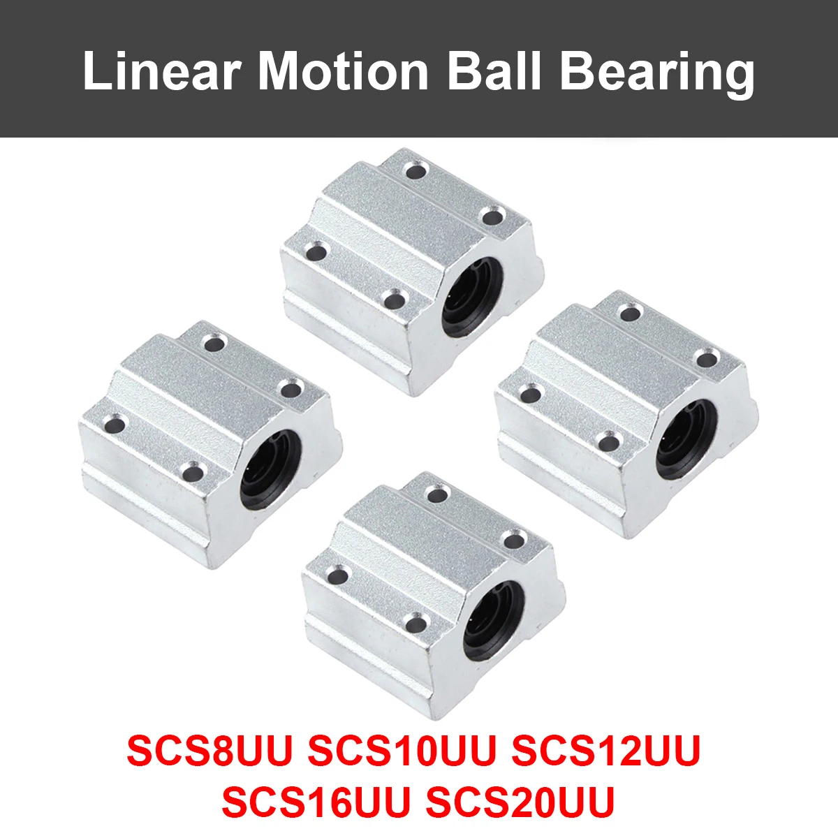 4PCS Linear Shaft Ball Bearing SCS8UU SCS12UU SCS16UU SCS20UU SCS25UU Linear Motion Slide Blocks Bushing CNC 3D Printer Parts