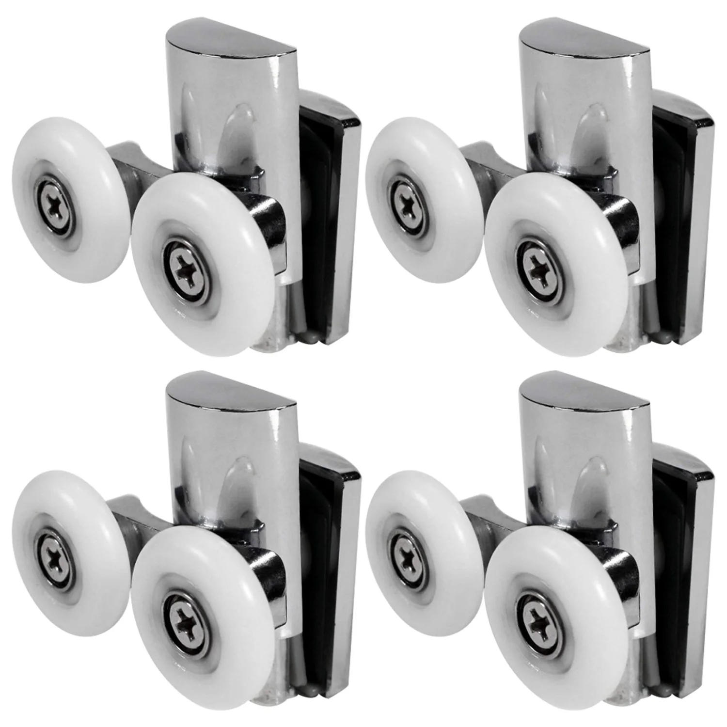 4Pcs Shower Door Wheels 23mm Shower Door Rollers Heavy Duty Zinc Alloy Dual Wheel for Both Flat Sliding Shower Doors