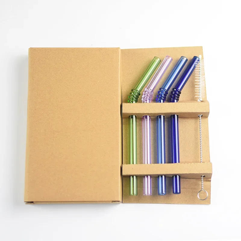 4Pcs/set 15cm Glass Straw with Brushes Heat Resistant Cold Beverage Bent Straws Reusable Straw Cocktails Bar Accessories