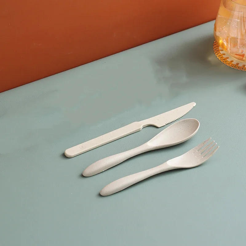 4PCS/Set Wheat Straw Cutlery Home Camping Spoons Forks Chopsticks Tableware Travel Portable Dinnerware Kitchen Use Accessories