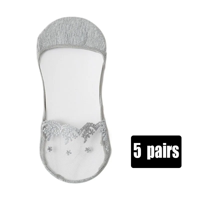 5 Pairs/set Lace Socks Invisible Mesh Lace Thin Short Boat Sock Sexy Transparent Thin Girls Sock Slippers Silicone Non-slip Sox