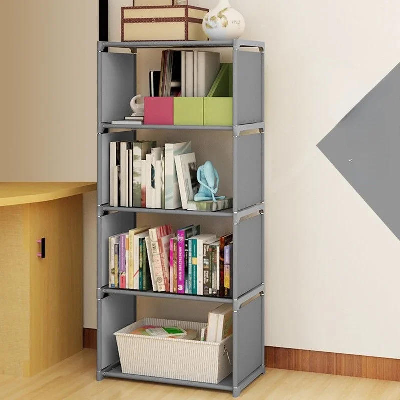 5 Tier Simple Bookshelf Easy Assembly Bookcase DIY Nonwoven Corner Sundries Can Be Moved Bookcase Creative Organizer Debris Rack