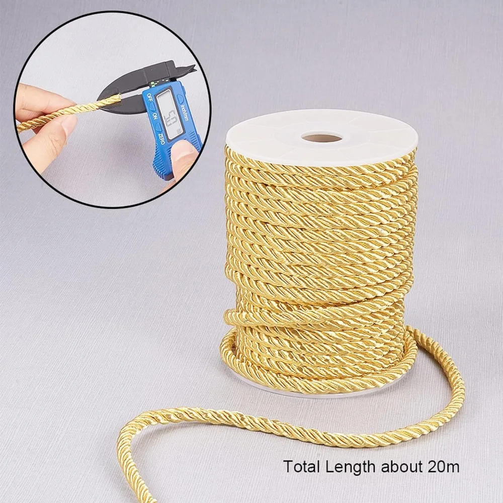 5mm 18 Yards Twisted Gold Rope Nylon Cord Trim Silk Cord Twisted Silk Ropes Graduation Honor Cord for Crafts Handfasting Home