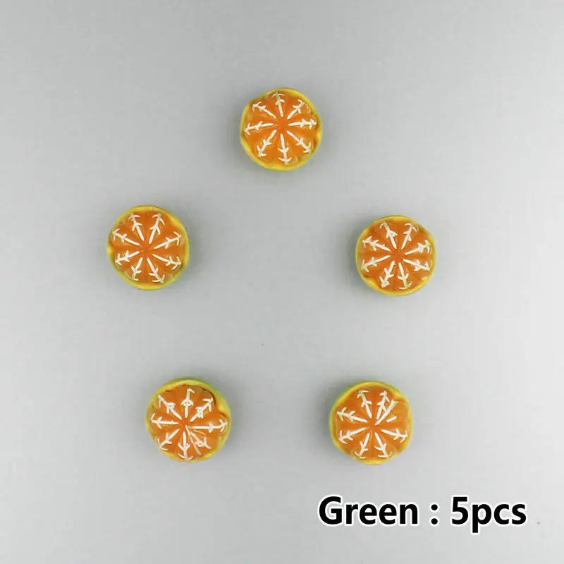 Product: Orange Series Fridge Magnets Material: Resin + Magnet Size: Small, very small, Dia 1 - 1 cm Q&;ty: 5pcs/lot ( Noted: The Orange Fridge Magnets can not be stick at the surface of fridge which the material isn't iron, like Glass, Wood, Plastic or other materials) Warning: Since this merchandise has small parts, please preserve it away from the contact of kids!!!