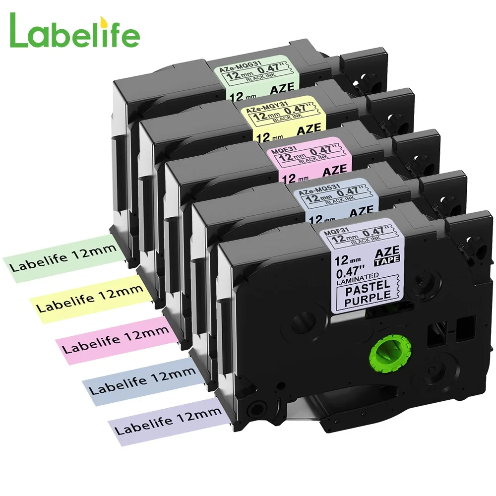 5PK Mixed Pale Color Matt Tapes TZe-MQF31 Pastel Purple Compatible for Brother P-Touch PT-D210 Label Printer MQE31 MQ531 MQY31