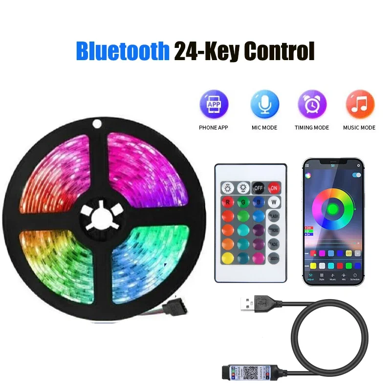 5V USB LED Strip Lights RGB 5050 Bluetooth Flexible Lamp Tape Luces 44K Led Lights for Room Decor Christmas Lights TV Backlight