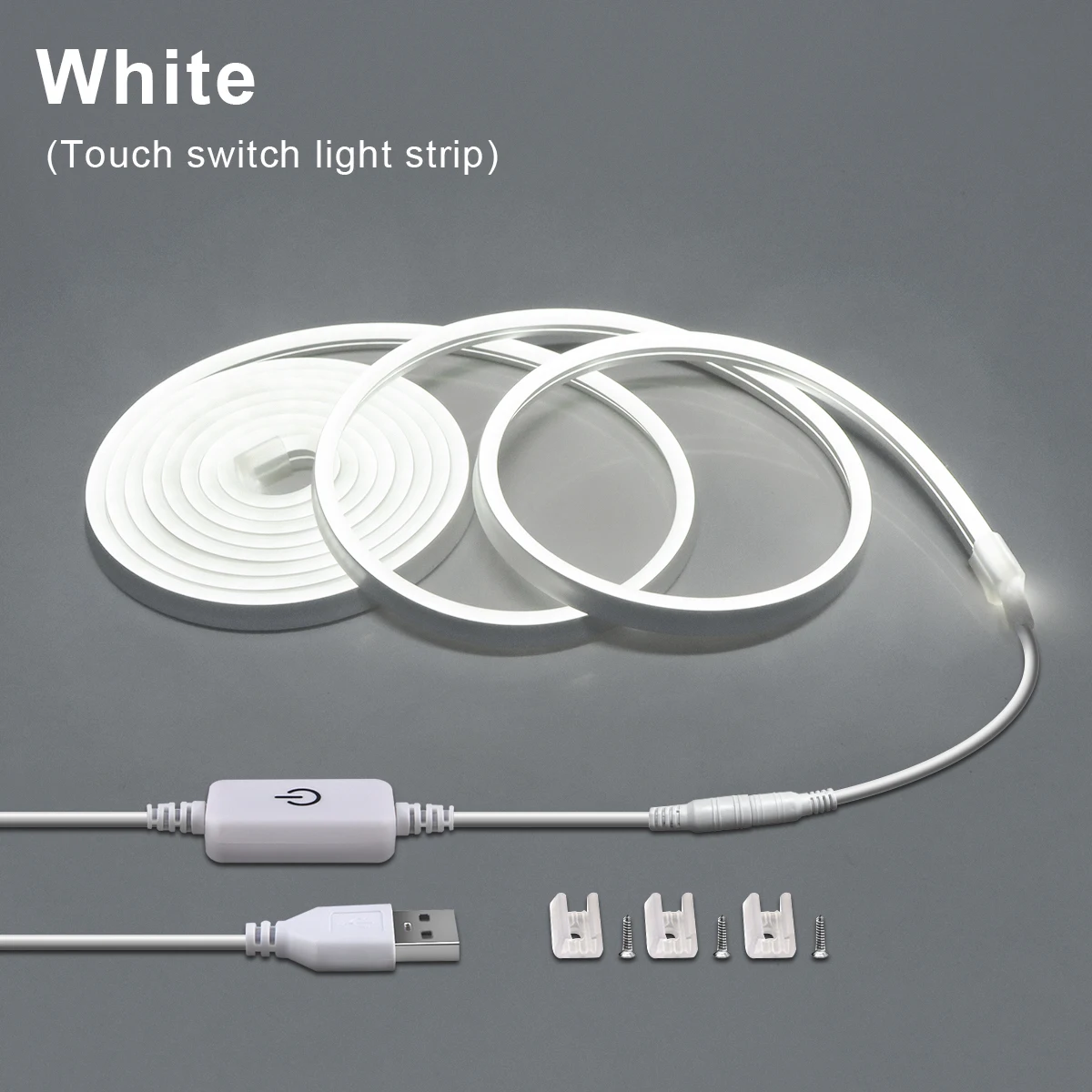Specification: Type: USB LED Neon Strip Lights Input Voltage: USB DC5V Light Color: Warm White/White Color Temperature: Warm White (3000K)/White (6500K) LEDs type: SMD LEDs QTY: 120LEDs/M Length: 1M/2M/3M Size: 12mm(W)X 6mm(H) Waterproof: Waterproof IP65 Feature: Low strength consumption ,Super-bright yet running with low temperature. All the sunshine unfold and completely soft ,luminous very even,high intensity and reliability.