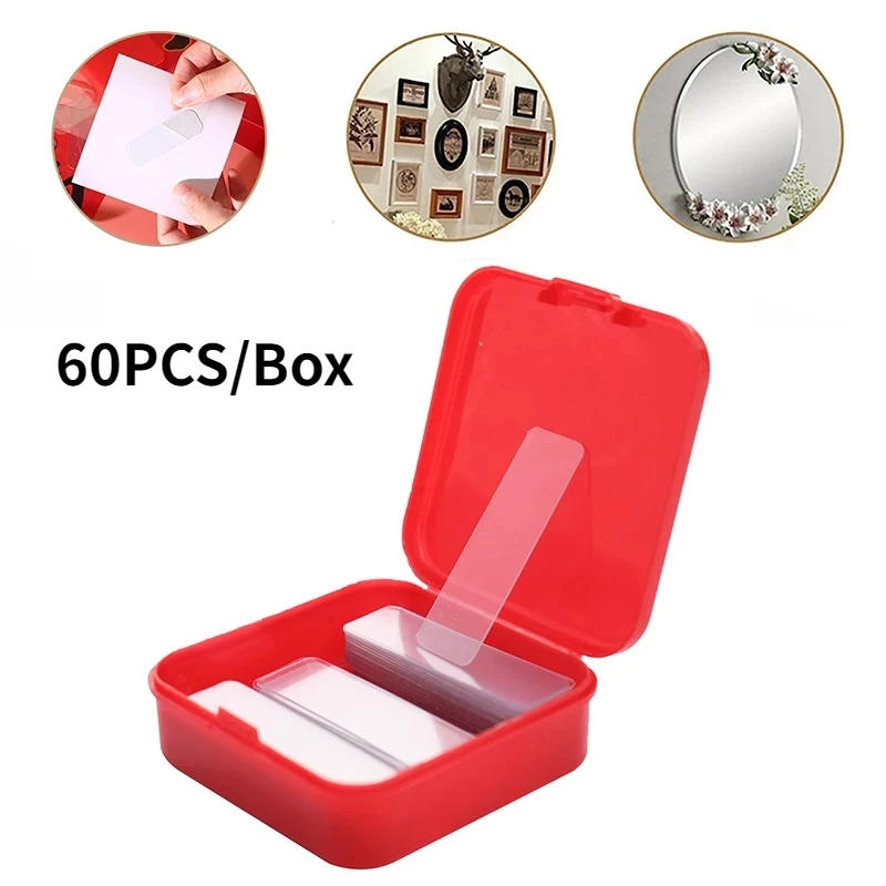 60pcs/Box Reusable Double Sided Stickers Nano PVC Tape Washable Waterproof Wall Sticker Traceless Self-Adhesive Transparent Tape