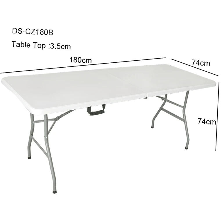 Products Description Product Name 6FT Fold-in-half Table set Unfolded Size 180*74*74CM Foldable Size 93 x 74 x 7 cm Material HDPE panel 3 CM Frame metallic Φ25x1mm+powder coating Package Size 94 x seventy five x eight CM Packing Method 1pc/polybag,1pc/carton Package three Layers Brown Carton Box N/G 10/11 Container Load Quantity 20GP/500PCS,40GP/1000PCS,40HQ/1230PCS Details Images Company Profile Certifications Our Team FAQ Q: Are you buying and selling corporation or producer ? A: We are manufacturing facility Q: How long is your delivery time? A: Generally it's 3-10 days if the goods are in stock or it is 20-30 days if the goods aren't in stock, it is in step with number Q: Do you provide samples? A: Yes, lets supply the pattern Q: What is your terms of charge ? A: T/T(30%DEPOSIT,BALANCE AGAINST BL COPY)