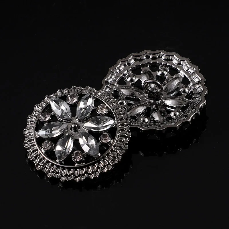 6Pcs 20/23/28mm High end metal rhinestone hollow button cashmere coat women's fur mink crystal decoration button B103