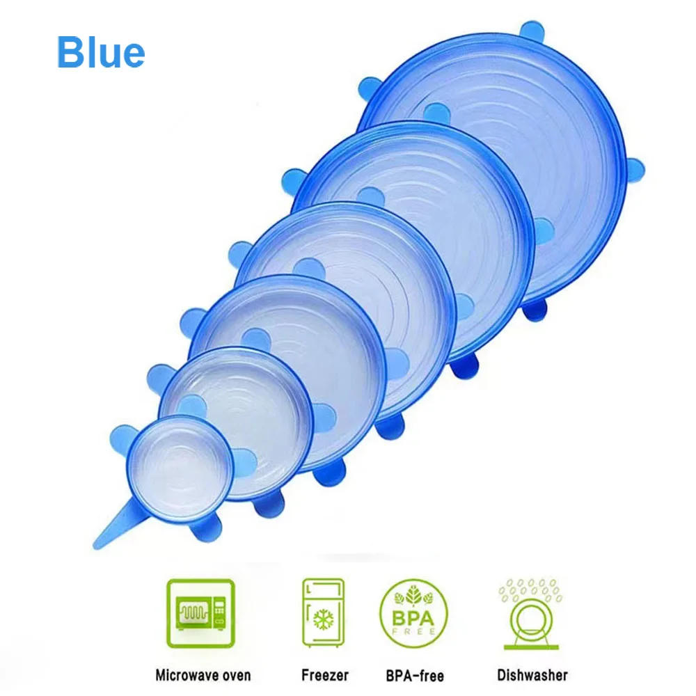 6-pieces set Food Grade Silicone Fresh-keeping Lids Food Sealing Cover Reusable Heat-resistant Lid Kitchen Accessories