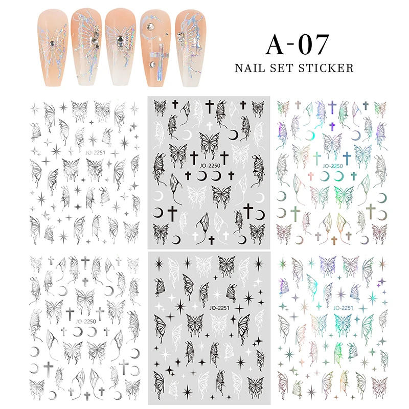 6sheet/set 3D Laser Butterfly Stickers For Nails DIY Gilding Slider Wraps Adheisve Nail Art Stickers Decals Manicure Charms