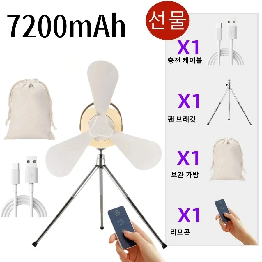 7200/3600mAh Camping Fan Battery Operated Remote Control 4 Gear Portable LED Light Tent Hanging Ceiling Fan for Home Outdoor Bed