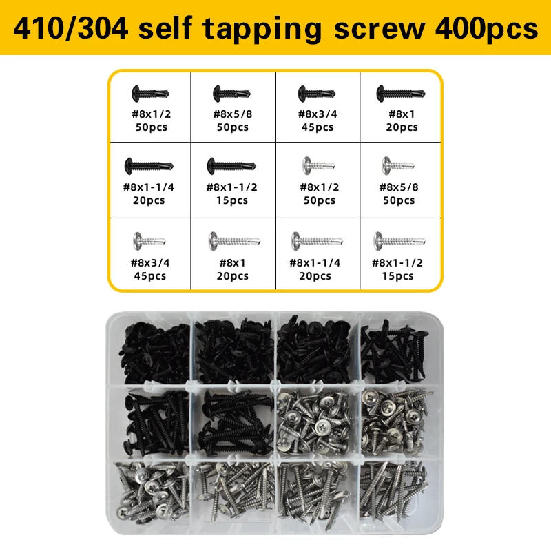 About this productsWide Application: Self Drilling Screws Assortment are chiefly utilized in metal, wood, or plastic. These screws commonly have a pointy point that helps penetrate the material.Material & Workmanship: Self Drilling Screws are made from high quality 304 chrome steel identified for its dependable and rigid energy in addition its corrosion resistant quality. The screw thread is very sharp and sturdy, and won't easily strip with the screw gun.Customized Set: More life like customized assortment. It entails 420pcs , meet all your demands, a should to your domestic life.Storage Box: There are 420 pcs several types of screws. All of screws could be packed in a strong convenient case, can be utilized for a garage box, is arranged to you.Quality Service: If you aren't one hundred pc convinced for any reason, we will take it again and provide a alternative or refund the total purchase payment if necessary. No hassles, no delays, and no questions asked!