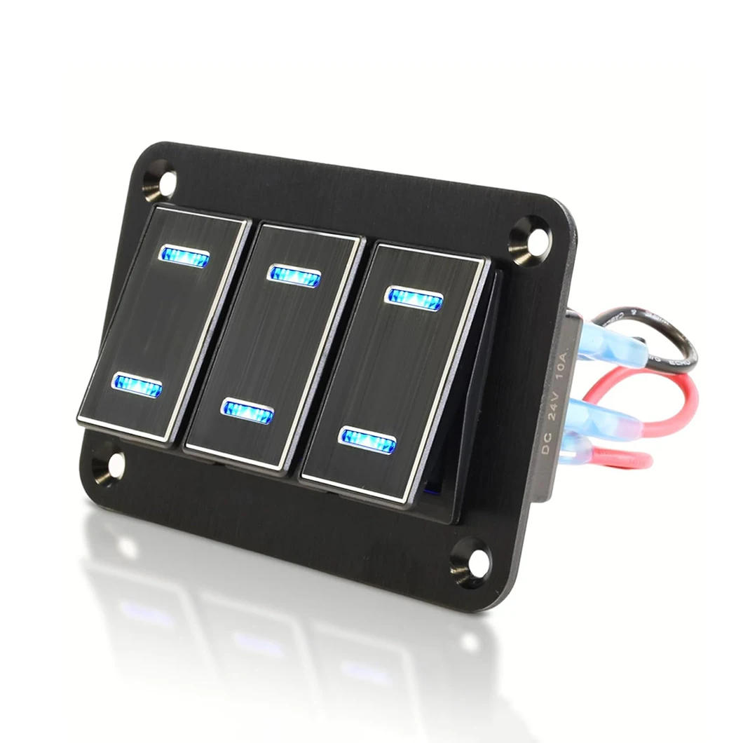 ABILKEEN Black 3 Gang Metal Rocker Switch Panel ON-OFF Dual LED Light Toggle Switch Modification Panel DC12-24V For Car RV Boat