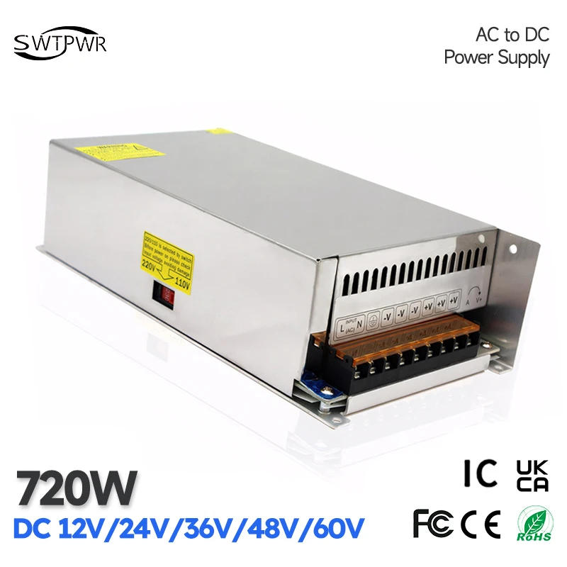 AC110V 220V to Power Supply DC 12V 24V 36V 48V 60V 720W Light Transformer for Driver LED Light Strip CCTV and 3D Print