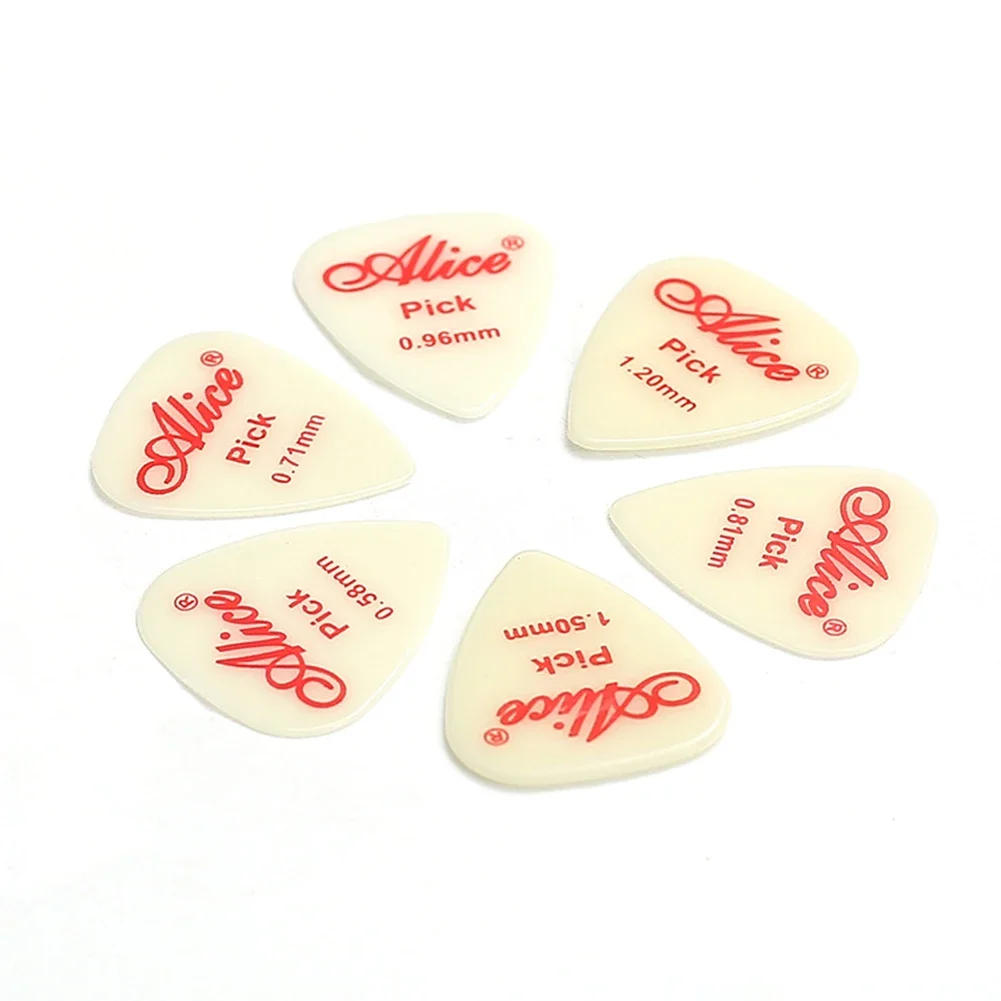 Alice Luminous Guitar Picks Fluorescent 0.58/0.71/0.81/0.96/1.2/1.5mm 25mm * 30mm 6 Pcs Acoustic Electric Guitars