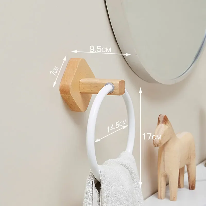 Aluminum+Wood Towel Ring, Hand Towel Holder for Bathroom, Towel Rack Hanger for Kitchen Wall Mount Heavy Duty Storage