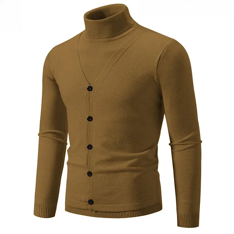 Amazon Independent Station Foreign Trade New Men's Knitted Top Two-piece Illusion Polo/turtle Neck Pullover Base Layer Sweater