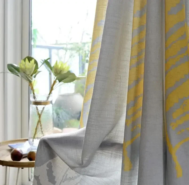 American Country-style Romeantic White Yellow Plantain Leaves Curtains for Living Room Grey Semi-shade Bedroom Fabric