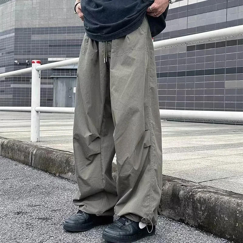 American Retro Overalls Drawstring Design Casual Pants Loose Wide-Leg Pants Men's Trendy Casual Spring and Summer