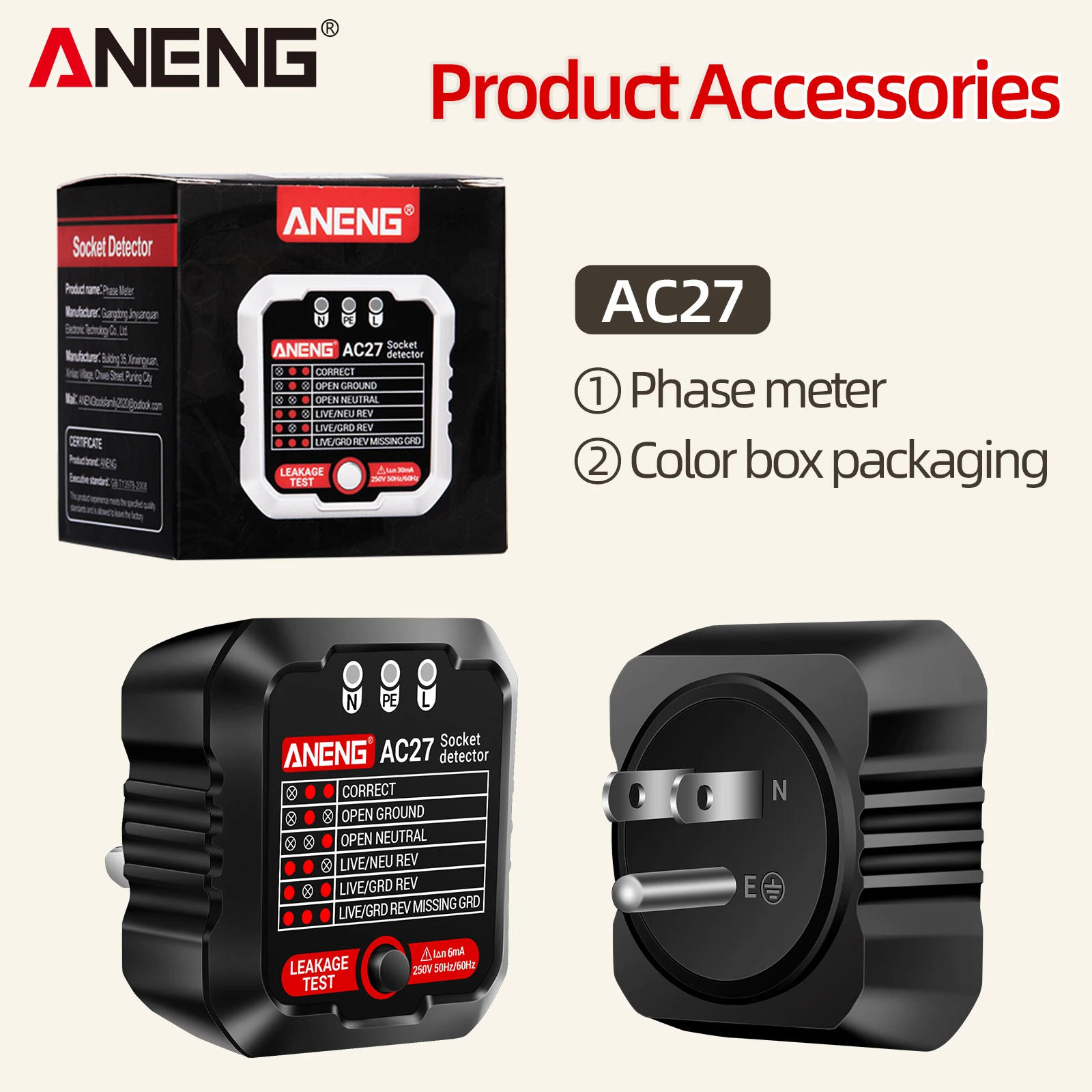 ANENG AC27 Smart Socket Tester EU/US Plug Polarity Phase Check Voltage Detector Test Electroscope Meter Circuit Breaker Finders