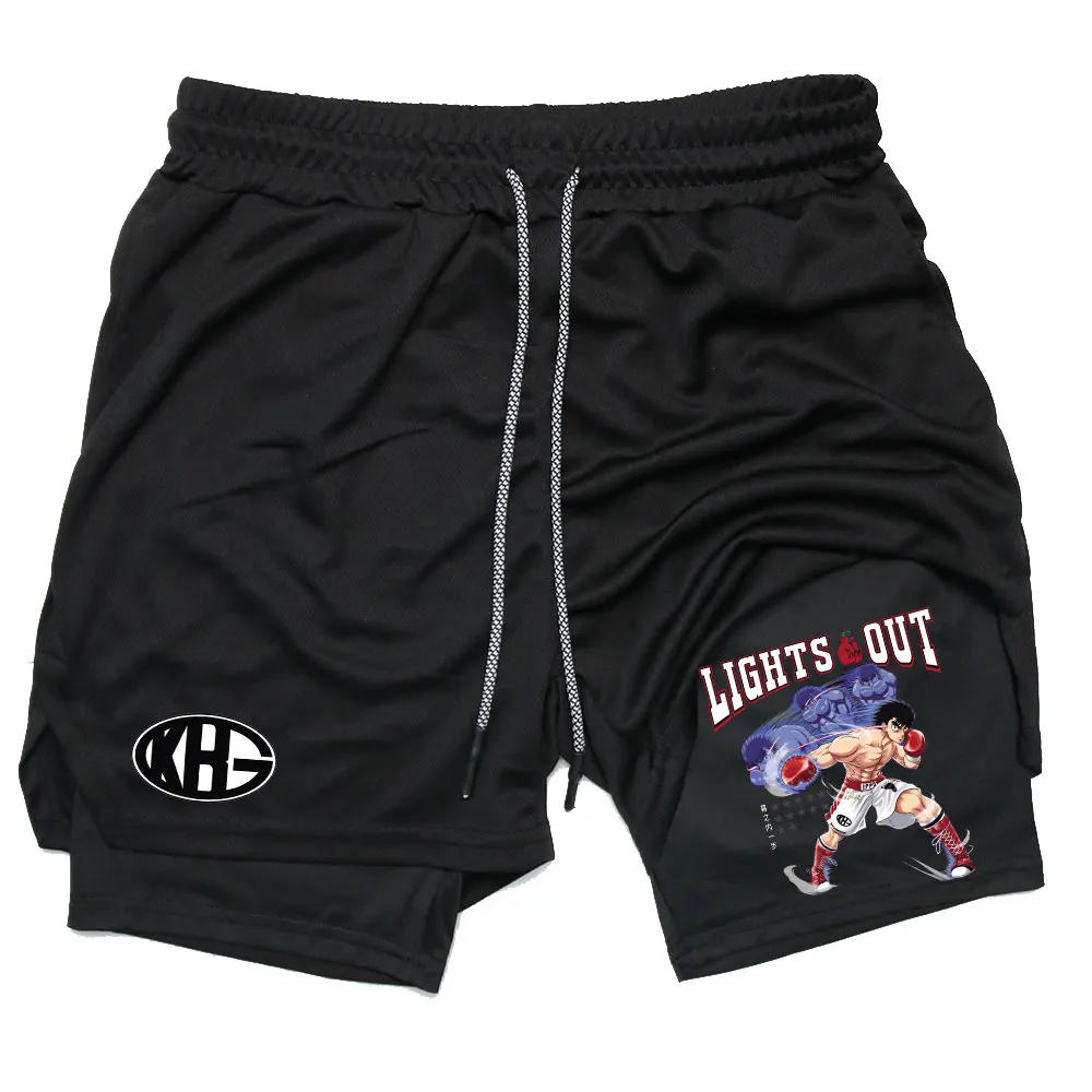 Anime IPPO Compreesion Shorts for Men Gym Workout Running Athletic 2 in 1 Performance Shorts with Pockets Activewear