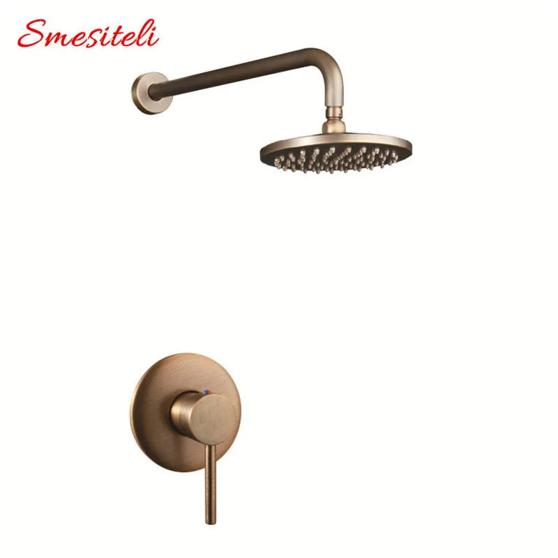 Antique 100% Brass Vintage Old 8 Inch Round Rainfall Shower Head + 400mm Wall Arm Set With Mixer Taps Concealed Bathroom Set