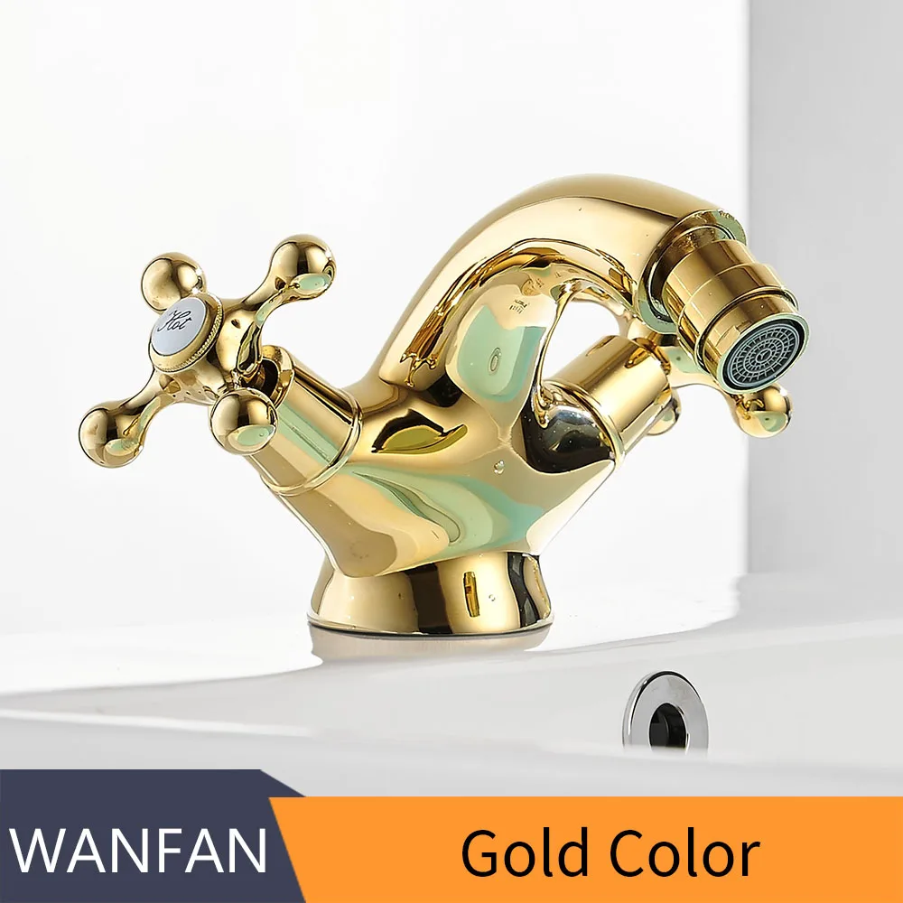 Antique Bidet Faucet Two Ceramic Swivel Handles Water Bathroom Sink Brass Single Hole Deck Mounted Water Mixer Tap 7313
