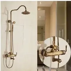 Antique Brass Carving Rainfall Shower Set Faucet Mixer Tap With Tub Bath &Set Bathtub