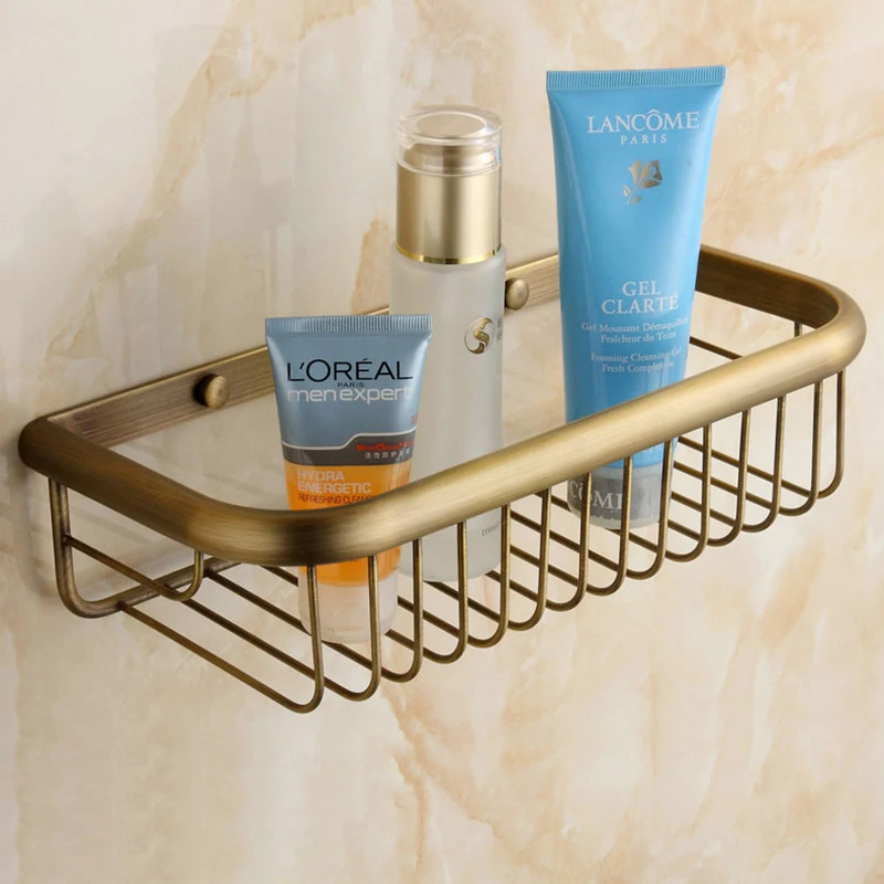 Antique Bronze Brass Wall Mounted Bathroom Soap Basket Bathroom Shower Shelf Shampoo Holder Shelves Storage Shelf Rack