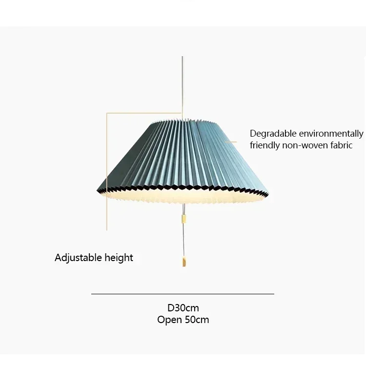 Art Design Pleated Deformed Fabric Umbrella Chandeliers Home Decor LED Lighting Lamp for Bedroom Living Dining Room Luminaire ------------------------ Material: Non-woven paper cloth Voltage: 90-260V Dimensions: see options Light source: LED Scope of application: 5-15㎡ Application scenarios: Dining room, Bedroom,Living room,etc. >>><<< The following is the product scene demonstrate ---------------- >>><<< The following is a real shot exhibit of the product ---------------- ----------------------- We are an authorized A category lighting fixtures manufacturing company. We have all of the licenses and certifications our merchandise meet the European standards as well. We use the finest and best quality materials in our merchandise
